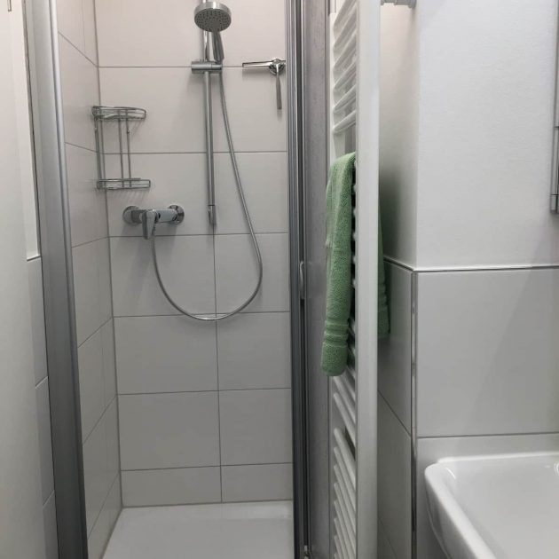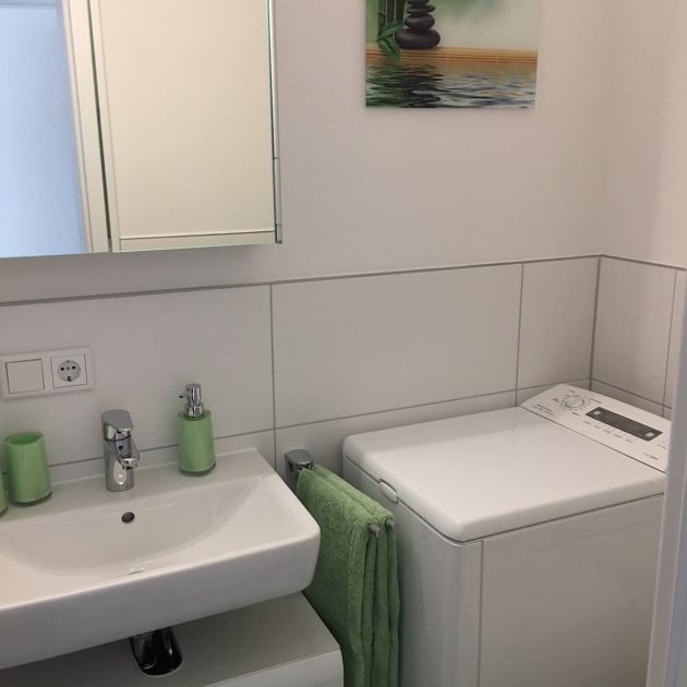 Im schönen Bad finden sie Waschbecken, Toilette und Dusche mit Abtrennung. Zusätzlich ist es mit einem Waschtrockner bestückt. Selbstverständlich stehen ihnen Hand- und Duschtücher sowie ein Föhn zur Verfügung.