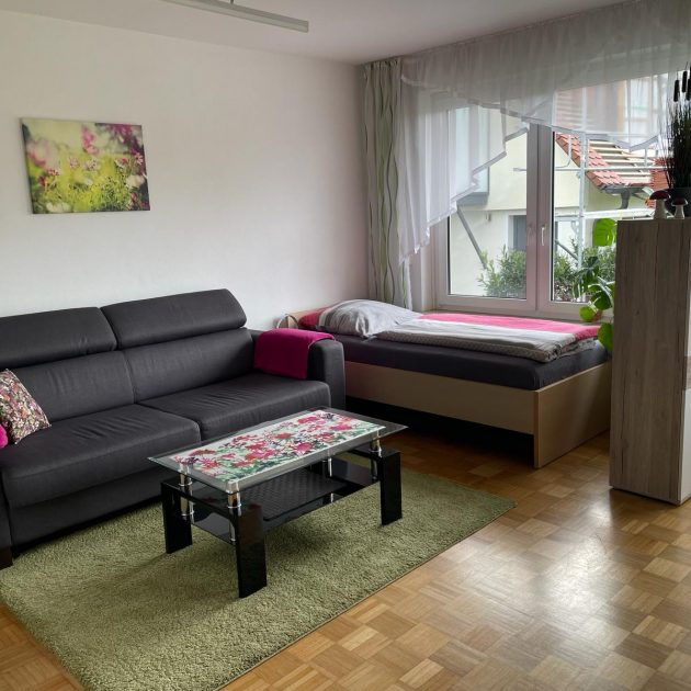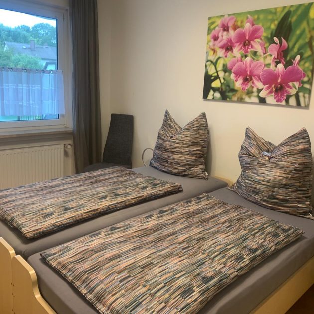 „Die Wohnung von Anja und Michael ist nicht weit von Dachau entfernt und sehr schön und ruhig gelegen. Von der Terrasse aus hat man einen schönen Blick auf den Garten und das Zwiebeltürmchen der kleinen Kirche im Ort. Ideal, wenn man vom Lärm der Welt mal etwas Abstand haben will, und doch mit räumlicher Nähe…